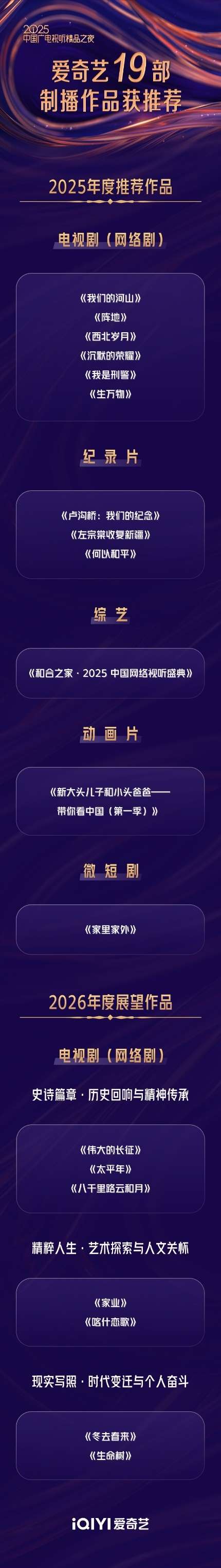爱奇艺19部制播作品获“2025中国广电视听精品之夜”重磅推荐(爱奇艺节目制作中心)