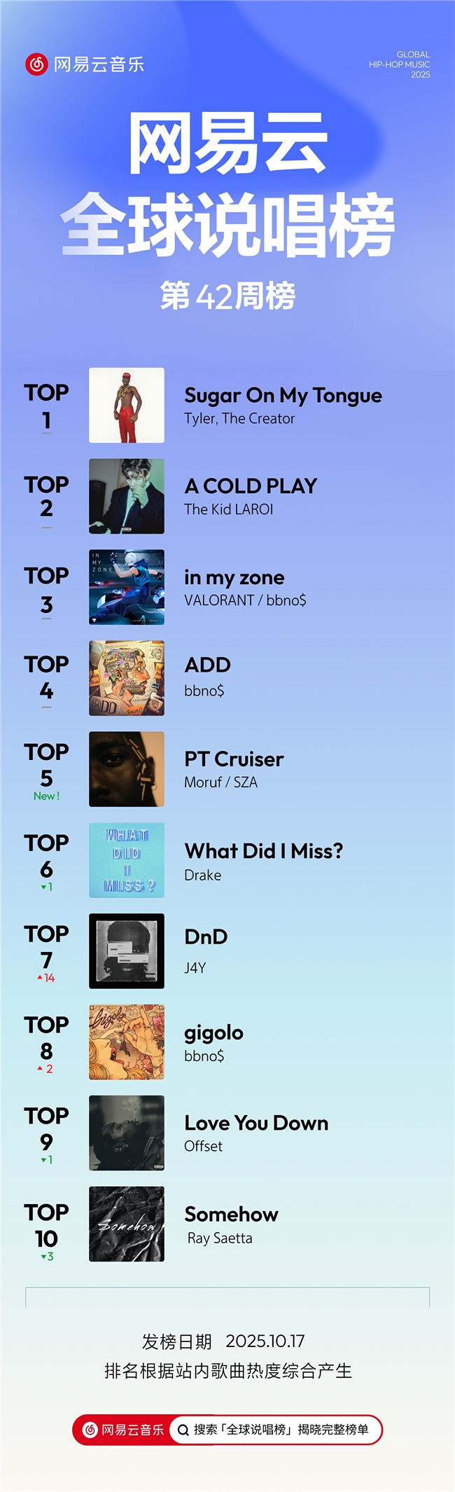 网易云音乐说唱周榜TOP10: