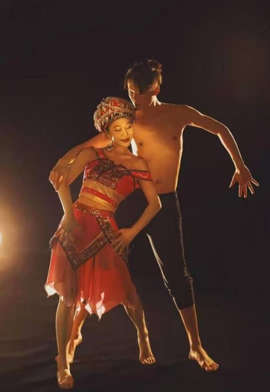 戏剧结构扎实,兼用喜剧手段——男生群舞的丑戏、矮子步、腾空跳、蛙跳以及脸上表情和形体的夸张表现,揭盖头、掀轿帘的逗趣,极尽渲染了幺妹花开幸福。当轿帘掀开,观众看到的不仅是哭嫁习俗的现代转译,更是一场文化基因的觉醒仪式。夏冰将“阳雀叫唤”歌谣转为欢快舞步,花轿颠簸化作生命律动。道具莲香运用灵巧,可作花梯、花房、打棍,为舞蹈注入蓬勃生机。作品通过诙谐生动的表现手法,展现爱情的热烈与智慧,国际评论称其“以微观视角折射宏大民族精神”。