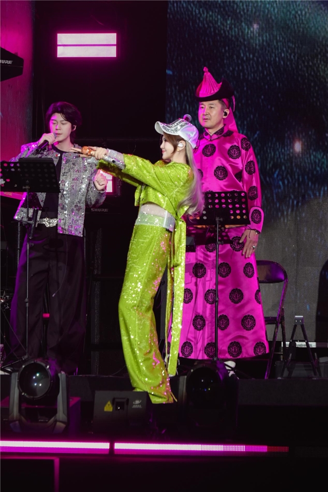 而《通天大道+红火中国年》的灯光+DJ+乐队秀环节,更是将现场气氛推向了高潮,电子音乐的节奏感与草原音乐的豪迈感交织在一起,让观众再次感受到了不一样的民族流行音乐魅力。