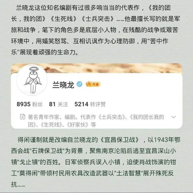强上加强的是孔笙导演搭档的编剧,编剧之神、249兰晓龙。《士兵突击》、《我的团长我的团》,目前内地娱乐圈都找不到第二款代餐的唯一真神编剧。兰晓龙尤其擅长在宏大的历史背景下,刻画有血有肉、真实动人的小人物群像。