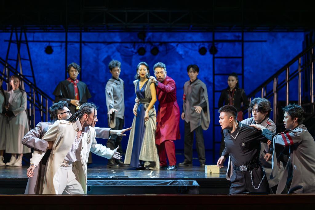 冯远征、杨佳音导演话剧《哈姆雷特》2025年9月在首都剧场首演剧照。(北京人艺供图)