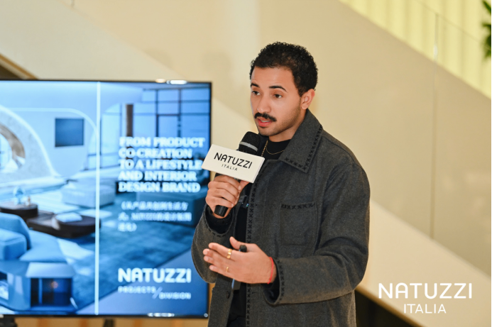 如果说 Andrea Steidl 是设计哲学的传递者,那么 Pasquale Junior Natuzzi 则扮演着品牌战略的布道者与生态共建的发起人。在每一站的分享中,他清晰地勾勒出 Natuzzi Italia 从“制造者”向“生活方式解决方案提供者”进化的战略蓝图。尤其在题为《从产品共创到生活方式:Natuzzi的设计版图进化》的分享中,他正式向中国设计社群揭示了驱动这一转型的核心引擎——Natuzzi Projects Division 的成立。 他阐释道,该部门专为室内设计师、建筑师与开发商构建,提供从概念构思到最终落地的 “交钥匙”全案服务,业务范畴已从住宅与别墅,延伸至酒店、办公空间及品牌化住宅等综合性项目。Pasquale Junior Natuzzi 系统介绍了支撑该体系的四种合作模式:从基础选品、灵活定制、完全定制,直至覆盖整体空间的全案设计,并以迪拜住宅项目等全球案例,生动诠释了从"制造单件家具"到"淬炼完整生活美学体系"的跨越式成长。