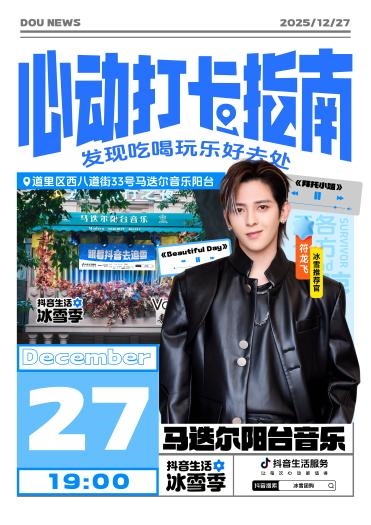 谁能拒绝雪地里的live现场?12月27日19:00,全能唱作人符龙飞领衔登陆马迭尔阳台音乐,现场演绎《拜托小姐》、《BeautifulDay》等人气曲目,用音乐与热情点燃整个冰雪剧场,与你一起在旋律中释放热情、在音符间邂逅童话。