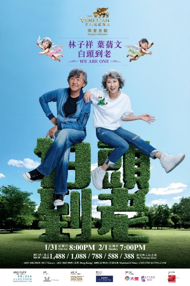 (中国澳门,2026年1月5日)– 中国香港乐坛两位传奇巨星──林子祥与叶蒨文,将于2026年1月31日及2月1日登陆澳门威尼斯人®的威尼斯人综艺馆,举办 “白头到老WE ARE ONE”世界巡回演唱会──澳门站。门票将于2026年1月6日(星期二)中午12时起通过金光票务、澳门售票网及大麦网公开发售。