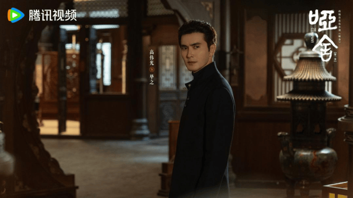《哑舍》的核心魅力,在于将冰冷的古董赋予滚烫的生命力,以“古物寻回”为叙事主线,构建出一幅多元时空交织的瑰丽画卷。定档海报以古董店“哑舍”为核心场景,呈现出古典与奇幻交织的视觉质感。中式雕花门窗搭配砖墙、灯笼等元素,营造浓郁传统氛围;窗棂内则掩映着鱼纹镜、留青梳、锟铻刀、青铜剑、人鱼烛、六博棋、双跳脱、四季图等奇珍古董,古董店老板毕之(高伟光饰)、实习宠物医生苏北陆(梁靖康饰)围坐石桌,二人对饮甚欢,“神秘老板”和“脱线医生”对比鲜明,古今搭档“跨时空寻珍”氛围感呼之欲出。