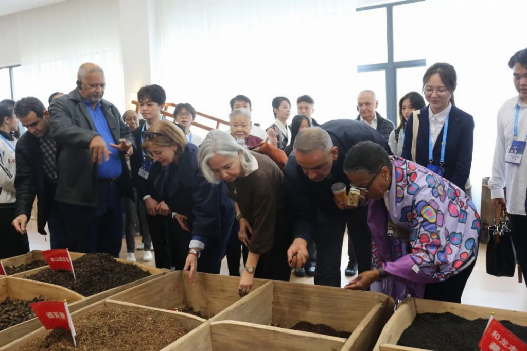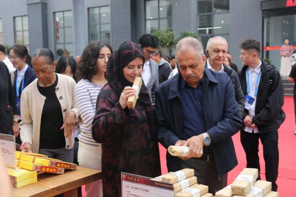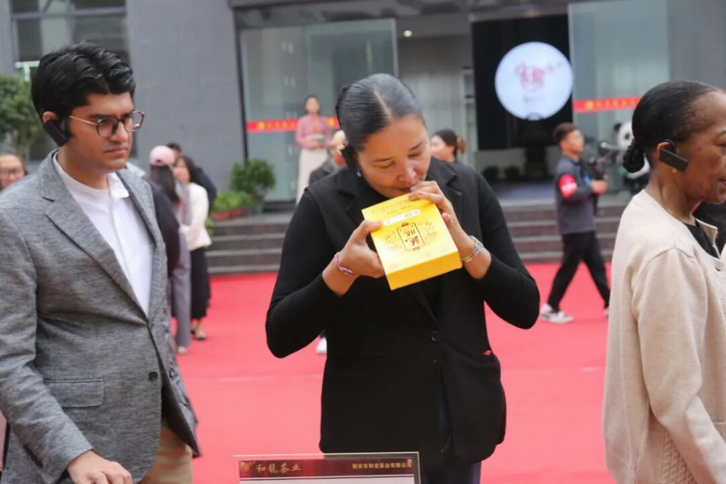 “民以食为天,食以味为魂。”雨城“七雅美食”更以特色风味征服国际味蕾。驻华大使们不仅品尝了醇厚的藏茶滋味,还亲手体验人类非遗“南路边茶”制作技艺,不少人忍不住感慨:“Amazing!”佛得角共和国驻华大使阿林多・纳斯西门托・多罗萨里奥表示:“雅安藏茶很好喝,千年故事更让我印象深刻。”越南社会主义共和国驻华大使夫人黄氏香江也说道:“一进茶厂就被藏茶香吸引,身体都觉得舒服,雅安藏茶太神奇了!”