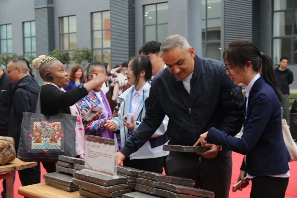 大熊猫是雨城最具国际辨识度的“名片”,也是此次文化交融的核心“使者”。走进碧峰峡大熊猫基地,圆滚滚的“国宝”或抱竹啃食、或迈着内八字漫步,现场惊叹声不断,驻华大使一行纷纷举着手机记录萌态。熊猫文创产品同样备受青睐,埃及商务参赞萨米尔・加尔斯丁拿起熊猫文创爱不释手,赞叹道:“太可爱了。”