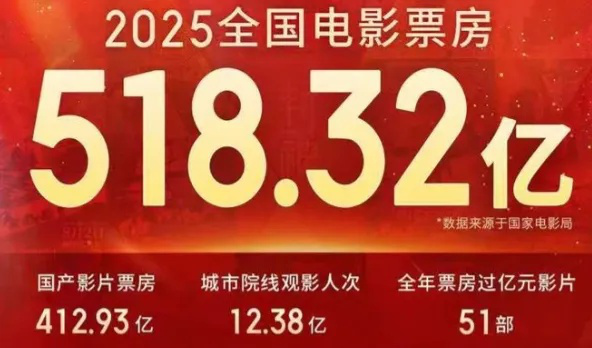 1月21日,当国家电影局公布2025年中国电影全产业链产值8172.59亿元、票房拉动系数达1:15.77的核心数据时,一组鲜明对比随之浮现:2025年全国电影票房518.32亿元,仅占全产业链产值的6.3%。