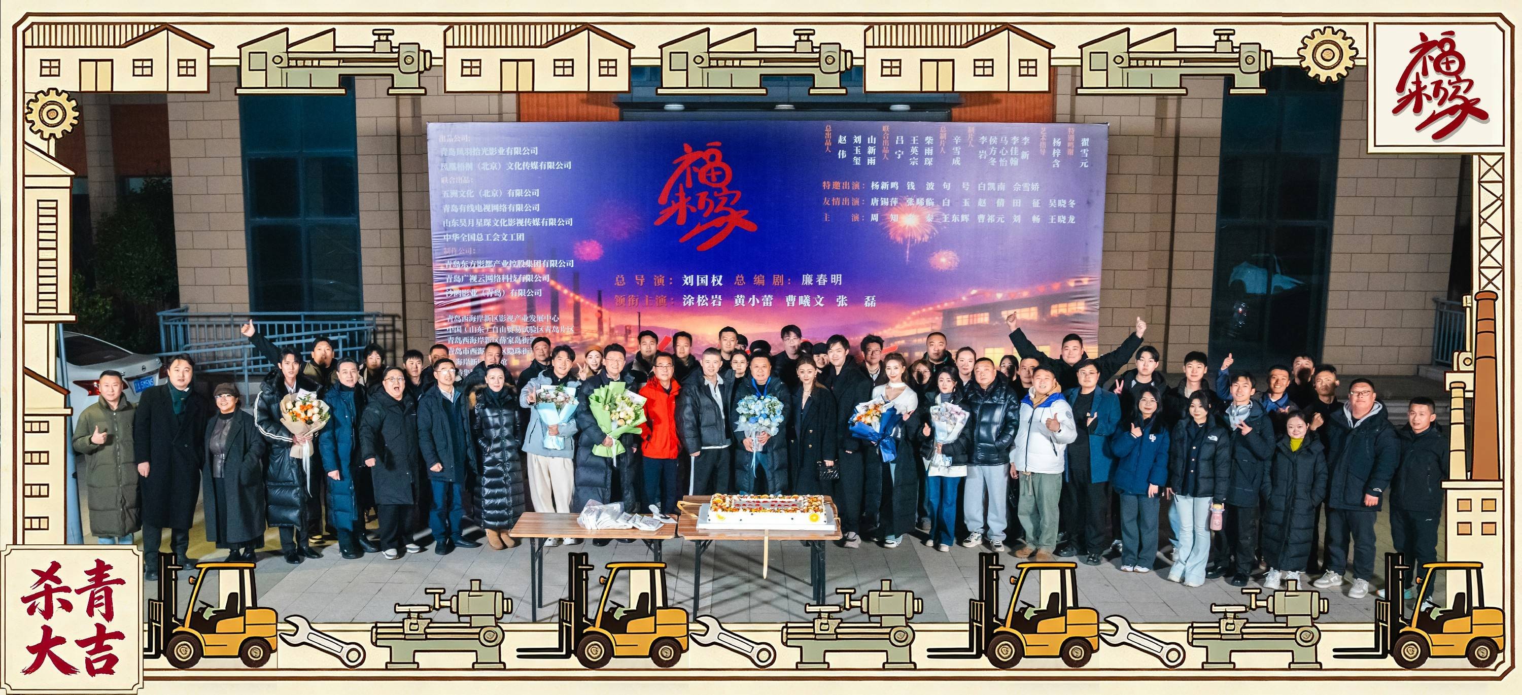 近日,聚焦国营厂改革转型与职工百态的现实主义长剧《福来万家》正式圆满杀青。该剧由青岛市中共宣传部、青岛市文旅局指导,凤凰梧桐(北京)文化传媒有限公司、青岛凤羽拾光影业有限公司出品,五洲文化(北京)有限公司、中华全国总工会文工团、青岛有线电视网络有限公司联合出品,青岛东方影都产业控股集团有限公司、青岛广视云网络科技有限公司、沙鸥(影业)青岛有限公司联合摄制。著名导演刘国权执导、编剧廉春明执笔,涂松岩、黄小蕾、张磊、曹曦文领衔主演,以深化改革为时代背景,扎根燕平集团第二分公司的车间与家属院,通过涂松岩饰演的沙来福、黄小蕾饰演的马大咧、张磊饰演的吴国槐、曹曦文饰演的虞萍等核心人物的职场博弈与生活纠葛,串联起国营老厂转型期的阵痛与机遇,在家长里短的烟火气中,书写基层职工的坚守担当与家国情怀。