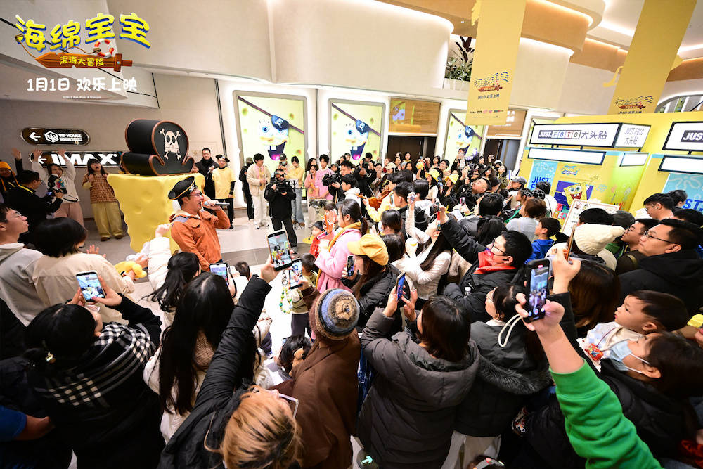 《海绵宝宝:深海大冒险》在北京三里屯举办了“开年看海绵 快乐一整年”主题首映礼,活动现场用海绵宝宝标志性的明黄色包裹,海绵宝宝和派大星的巨型打卡墙让观众留下身影,比奇堡居民的角色跳舞屏吸引众多观众主动合影,成为现场极具人气的互动点。