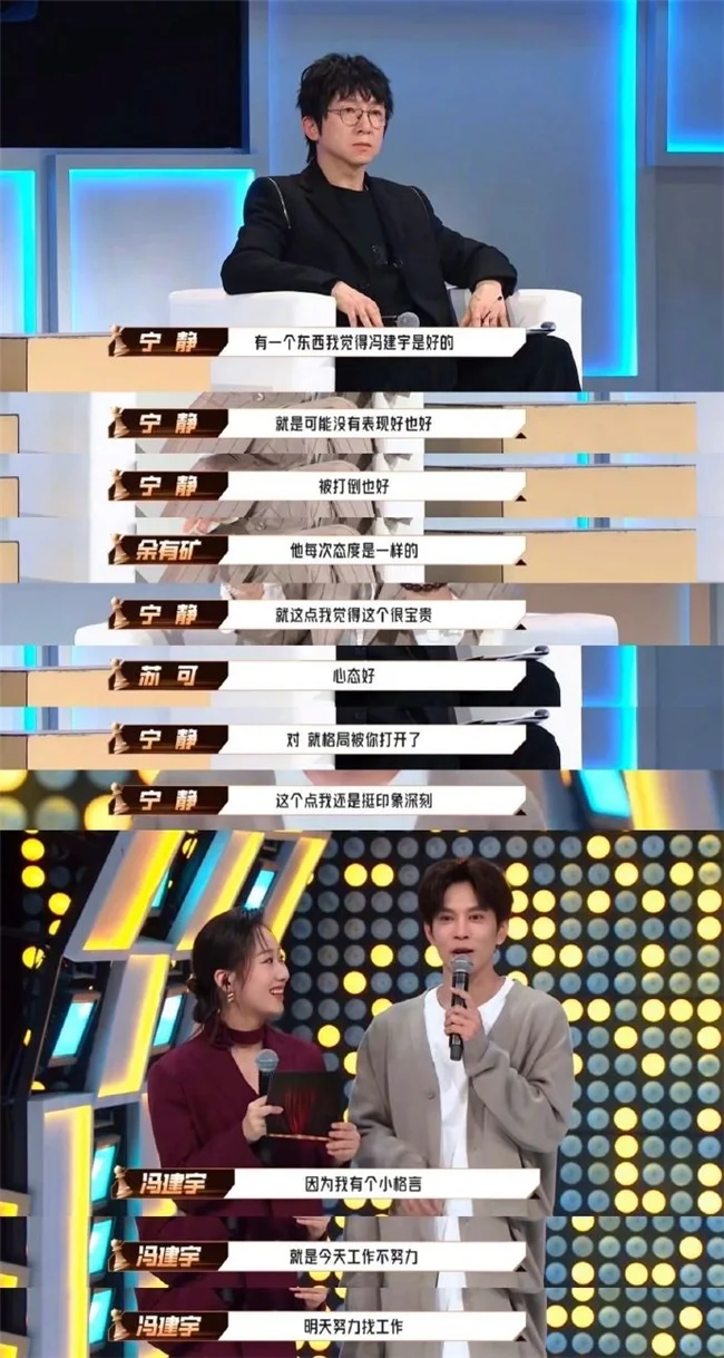一位综艺节目导演点评:“冯建宇展现出了多年积累的角色塑造功力,珍惜机遇的敬业态度、十年坚守的励志精神和有问必答的诚恳性格,这让他赢得了更多人的认可和支持。”