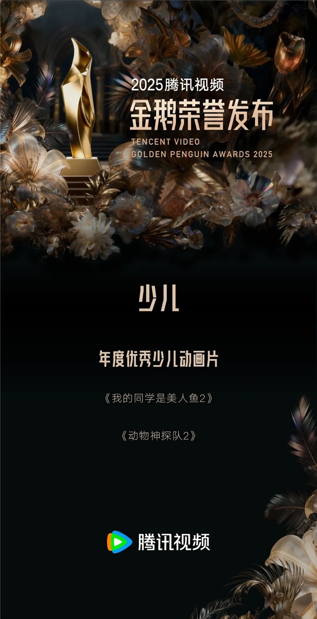 跨媒介单元中,《王者荣耀:荣耀之章命运篇》荣获年度优秀跨媒介作品;《王者荣耀》荣获年度跨媒介优秀IP。少儿方面,《我的同学是美人鱼2》《动物神探队2》荣获年度优秀少儿动画片。AI单元中,《带我去飞》荣获年度AI电影;《机械心与狗尾巴》荣获年度AI短片;《兴安岭诡事》荣获年度AI短剧;《新世界加载中》荣获年度AI短番。